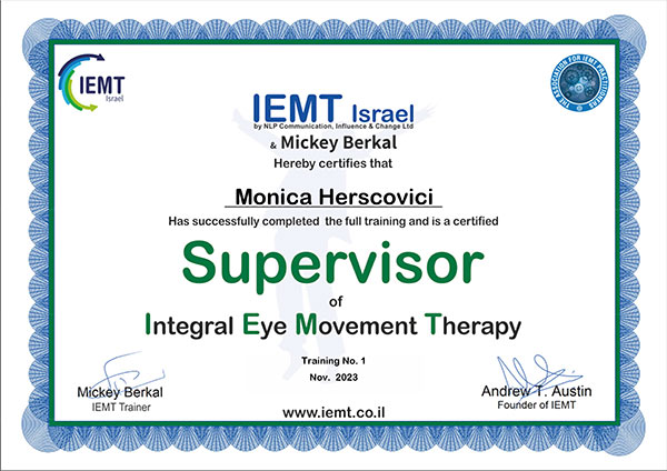 מוסמכת לטיפול ב- NLP, דמיון מודרך, תטא הילינג, אקסס-בארס ו- Time Line.